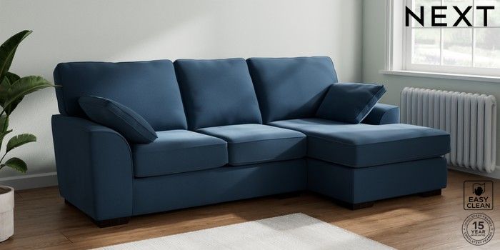 7.2.10 Stamford Medium Sofa Chaise - Right Hand Plush Velvet Easy Clean Airforce Blue Large Square Angle - Dark | Made Click here to use our website with more accessibility support, for example screen readers