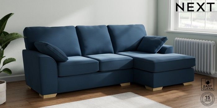 7.2.10 Stamford Medium Sofa Chaise - Right Hand Plush Velvet Easy Clean Airforce Blue Large Square Angle - Light | Made Click here to use our website with more accessibility support, for example screen readers