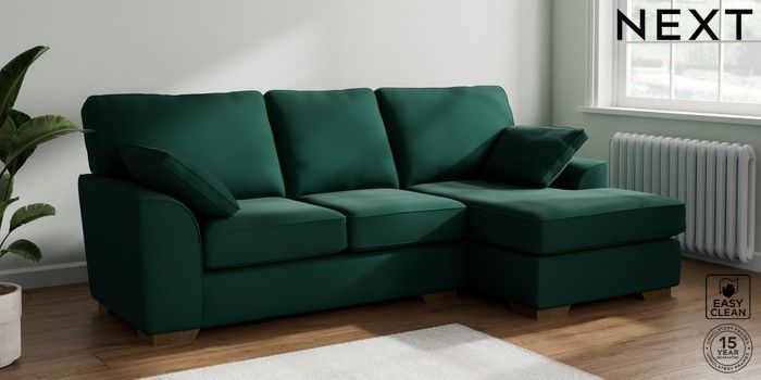 7.2.10 Stamford Medium Sofa Chaise - Right Hand Plush Velvet Easy Clean Bottle Green Large Square Angle - Mid | Made Click here to use our website with more accessibility support, for example screen readers