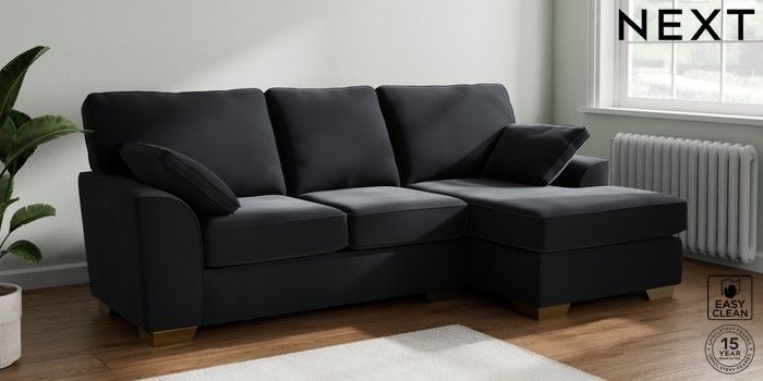 7.2.10 Stamford Medium Sofa Chaise - Right Hand Plush Velvet Easy Clean Charcoal Grey Large Square Angle - Brushed Brass | Made Click here to use our website with more accessibility support, for example screen readers
