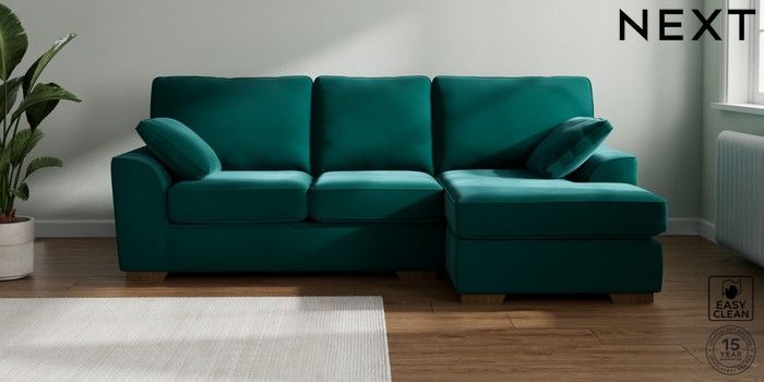 7.2.10 Stamford Medium Sofa Chaise - Right Hand Plush Velvet Easy Clean Juniper Green Large Square Angle - Mid | Made Click here to use our website with more accessibility support, for example screen readers