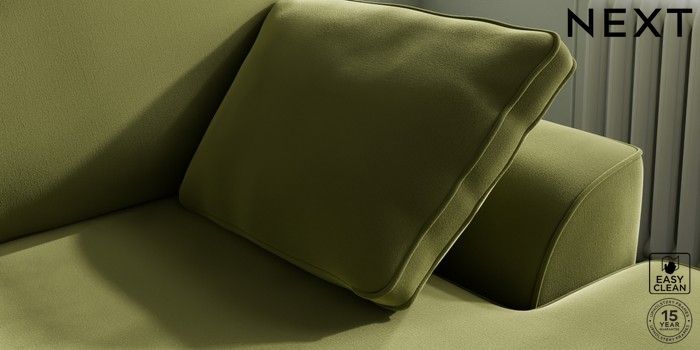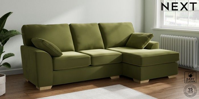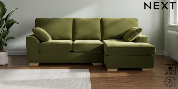 7.2.10 Stamford Medium Sofa Chaise - Right Hand Plush Velvet Easy Clean Mid Olive Green Large Square Angle - Light | Made Click here to use our website with more accessibility support, for example screen readers