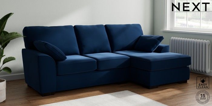7.2.10 Stamford Medium Sofa Chaise - Right Hand Plush Velvet Easy Clean Navy Blue Large Square Angle - Dark | Made Click here to use our website with more accessibility support, for example screen readers