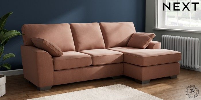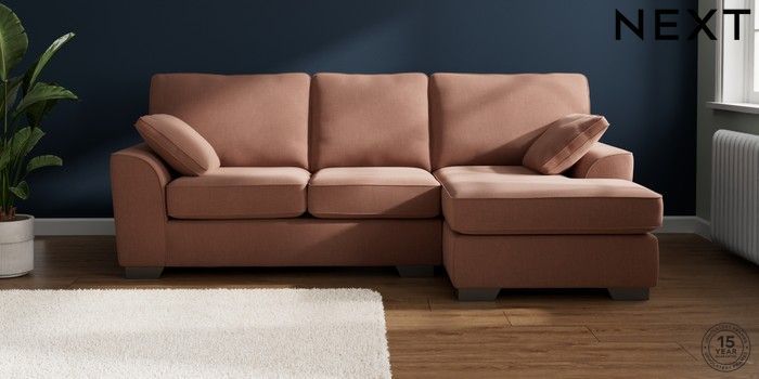 7.2.10 Stamford Medium Sofa Chaise - Right Hand Relaxed Linen Look Light Rust Brown Large Square Angle - Gunmetal | Made Click here to use our website with more accessibility support, for example screen readers