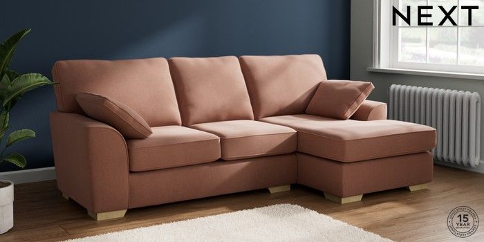 7.2.10 Stamford Medium Sofa Chaise - Right Hand Relaxed Linen Look Light Rust Brown Large Square Angle - Light | Made Click here to use our website with more accessibility support, for example screen readers