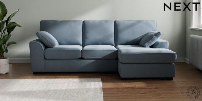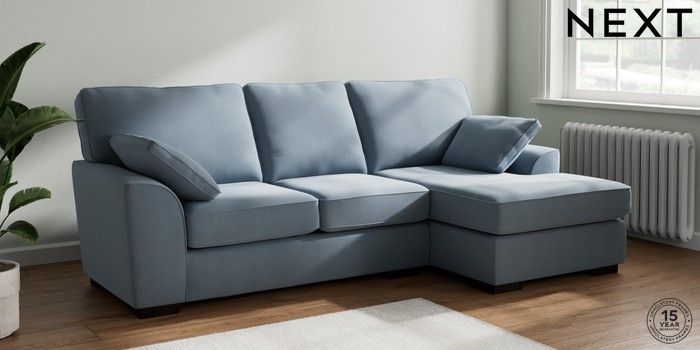 7.2.10 Stamford Medium Sofa Chaise - Right Hand Relaxed Linen Look Mid Blue Large Square Angle - Dark | Made Click here to use our website with more accessibility support, for example screen readers