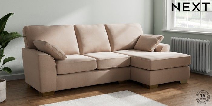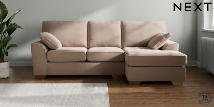 7.2.10 Stamford Medium Sofa Chaise - Right Hand Relaxed Linen Look Mid Natural Large Square Angle - Brushed Brass | Made Click here to use our website with more accessibility support, for example screen readers