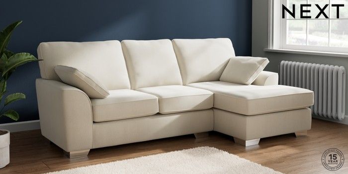 7.2.10 Stamford Medium Sofa Chaise - Right Hand Relaxed Linen Look Oyster Large Square Angle - Chrome Metal | Made Click here to use our website with more accessibility support, for example screen readers