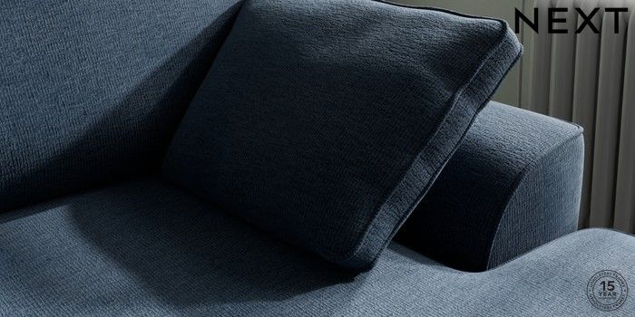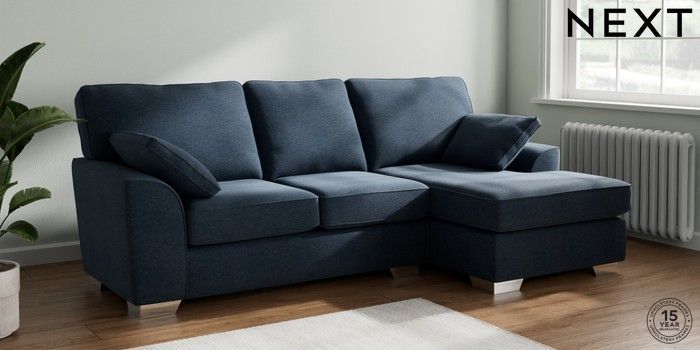 7.2.10 Stamford Medium Sofa Chaise - Right Hand Ripple Chenille Dark Blue Large Square Angle - Chrome Metal | Made Click here to use our website with more accessibility support, for example screen readers