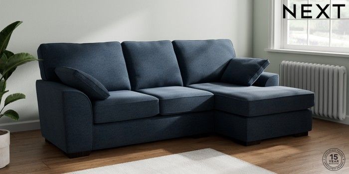 7.2.10 Stamford Medium Sofa Chaise - Right Hand Ripple Chenille Dark Blue Large Square Angle - Dark | Made Click here to use our website with more accessibility support, for example screen readers
