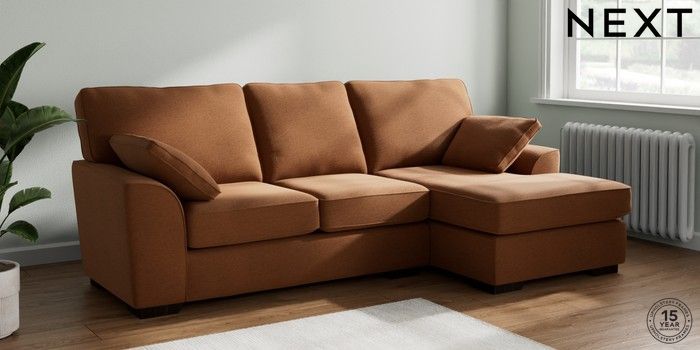 7.2.10 Stamford Medium Sofa Chaise - Right Hand Ripple Chenille Mid Rust Brown Large Square Angle - Dark | Made Click here to use our website with more accessibility support, for example screen readers