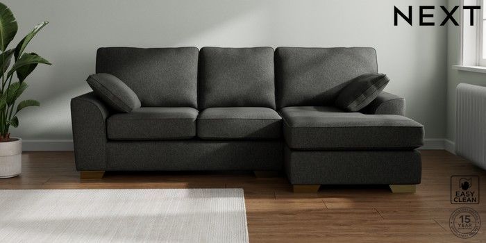 7.2.10 Stamford Medium Sofa Chaise - Right Hand Tweedy Blend Easy Clean Charcoal Grey Large Square Angle - Brushed Brass | Made Click here to use our website with more accessibility support, for example screen readers