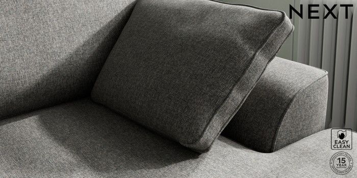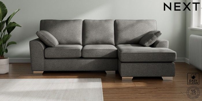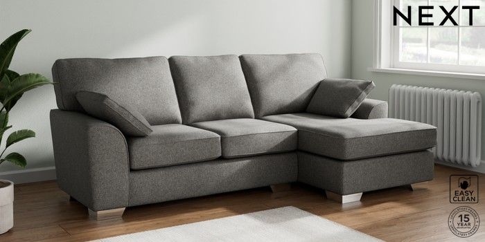 7.2.10 Stamford Medium Sofa Chaise - Right Hand Tweedy Blend Easy Clean Dark Grey Large Square Angle - Chrome Metal | Made Click here to use our website with more accessibility support, for example screen readers