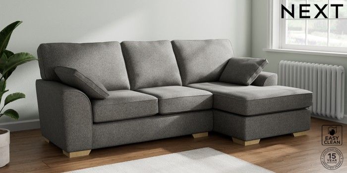 7.2.10 Stamford Medium Sofa Chaise - Right Hand Tweedy Blend Easy Clean Dark Grey Large Square Angle - Light | Made Click here to use our website with more accessibility support, for example screen readers