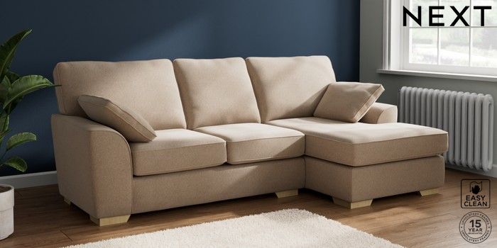 7.2.10 Stamford Medium Sofa Chaise - Right Hand Tweedy Blend Easy Clean Light Dove Natural Large Square Angle - Light | Made Click here to use our website with more accessibility support, for example screen readers