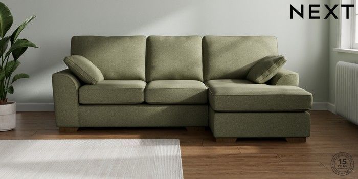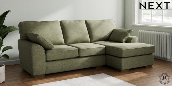 7.2.10 Stamford Medium Sofa Chaise - Right Hand Tweedy Chenille Mid Moss Green Large Square Angle - Mid | Made Click here to use our website with more accessibility support, for example screen readers