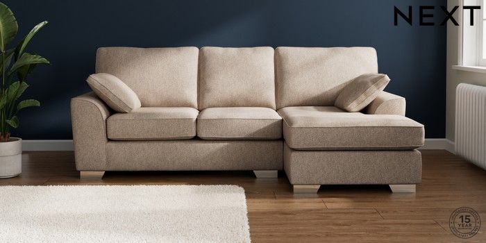 7.2.10 Stamford Medium Sofa Chaise - Right Hand Tweedy Chenille Mid Natural Large Square Angle - Chrome Metal | Made Click here to use our website with more accessibility support, for example screen readers