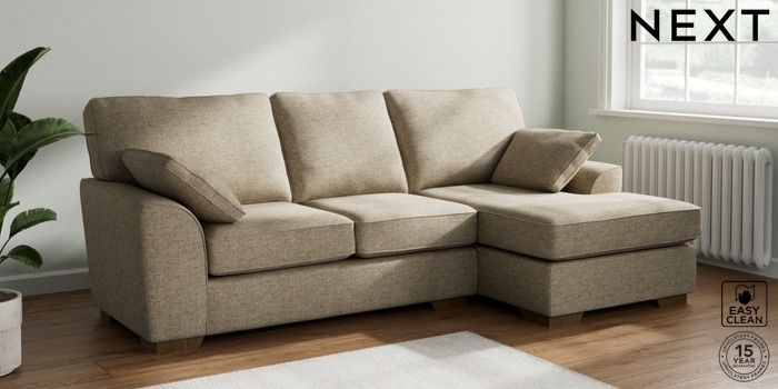 7.2.10 Stamford Medium Sofa Chaise - Right Hand Woven Chenille Easy Clean Mid Natural Large Square Angle - Mid | Made Click here to use our website with more accessibility support, for example screen readers