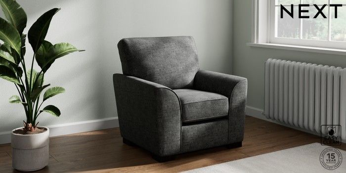 7.2.10 Stamford Small Armchair Boucle Weave Easy Clean Charcoal Grey Square Angle - Dark | Made Click here to use our website with more accessibility support, for example screen readers