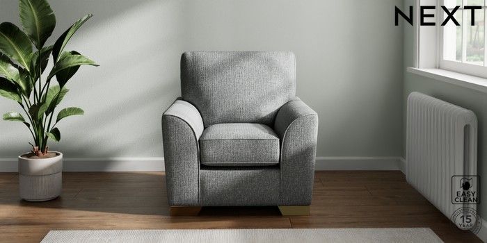 7.2.10 Stamford Small Armchair Chunky Boucle Easy Clean Mid Grey Square Angle - Brushed Brass | Made Click here to use our website with more accessibility support, for example screen readers
