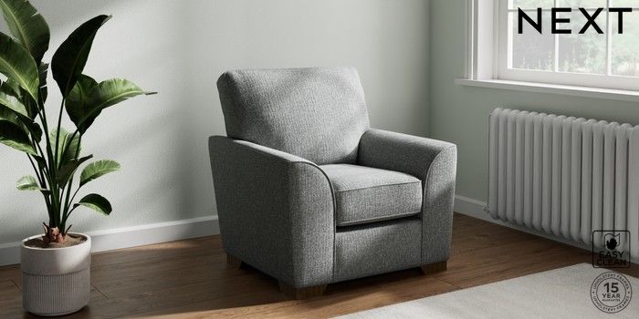 7.2.10 Stamford Small Armchair Chunky Boucle Easy Clean Mid Grey Square Angle - Mid | Made Click here to use our website with more accessibility support, for example screen readers