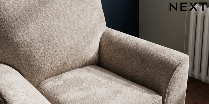 7.2.10 Stamford Small Armchair Chunky Chenille Light Dove Square Angle - Chrome Metal | Made Click here to use our website with more accessibility support, for example screen readers