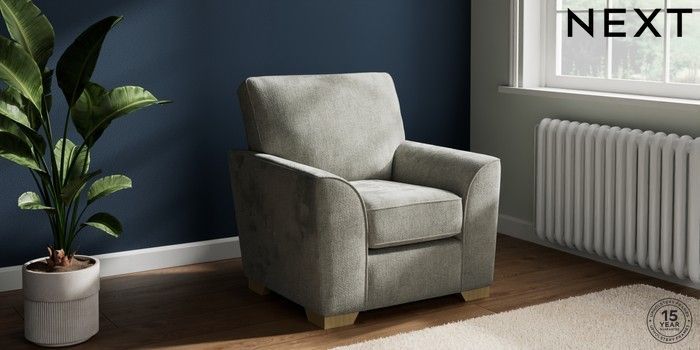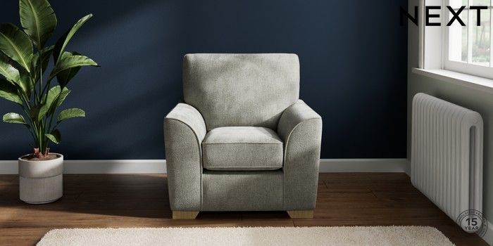 7.2.10 Stamford Small Armchair Chunky Chenille Light Grey Square Angle - Light | Made Click here to use our website with more accessibility support, for example screen readers