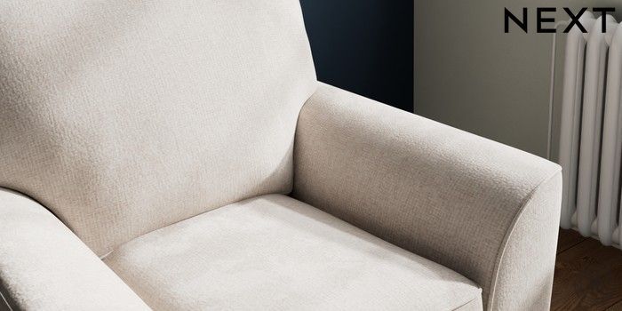 7.2.10 Stamford Small Armchair Chunky Chenille Oyster Square Angle - Brushed Brass | Made Click here to use our website with more accessibility support, for example screen readers