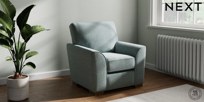 7.2.10 Stamford Small Armchair Chunky Marl Mid Blue Square Angle - Mid | Made Click here to use our website with more accessibility support, for example screen readers