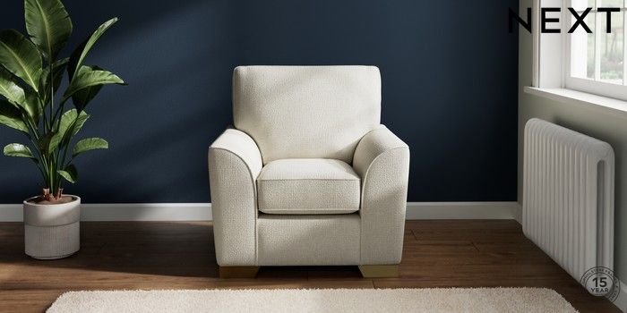 7.2.10 Stamford Small Armchair Chunky Texture Oyster Square Angle - Brushed Brass | Made Click here to use our website with more accessibility support, for example screen readers