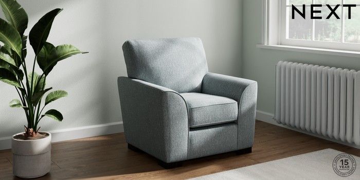 7.2.10 Stamford Small Armchair Chunky Weave Mid Blue Square Angle - Dark | Made Click here to use our website with more accessibility support, for example screen readers