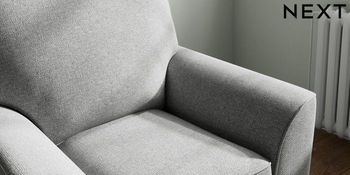 7.2.10 Stamford Small Armchair Chunky Weave Mid Grey Square Angle - Brushed Brass | Made Click here to use our website with more accessibility support, for example screen readers
