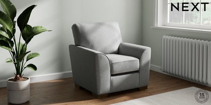 7.2.10 Stamford Small Armchair Chunky Weave Mid Grey Square Angle - Mid | Made Click here to use our website with more accessibility support, for example screen readers