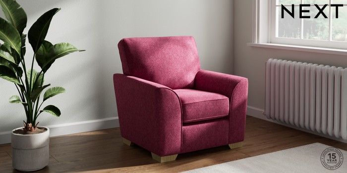 7.2.10 Stamford Small Armchair Cotswold Chenille Dark Raspberry Pink Square Angle - Light | Made Click here to use our website with more accessibility support, for example screen readers