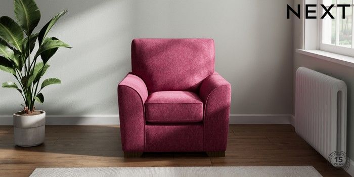 7.2.10 Stamford Small Armchair Cotswold Chenille Dark Raspberry Pink Square Angle - Mid | Made Click here to use our website with more accessibility support, for example screen readers