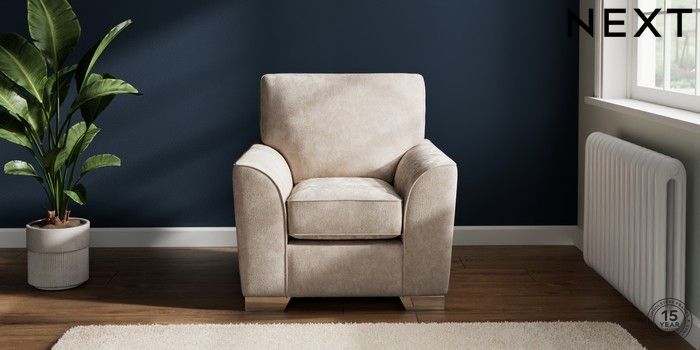 7.2.10 Stamford Small Armchair Distressed Velour Mid Natural Square Angle - Chrome Metal | Made Click here to use our website with more accessibility support, for example screen readers