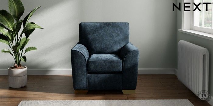 7.2.10 Stamford Small Armchair Distressed Velour Midnight Blue Square Angle - Brushed Brass | Made Click here to use our website with more accessibility support, for example screen readers