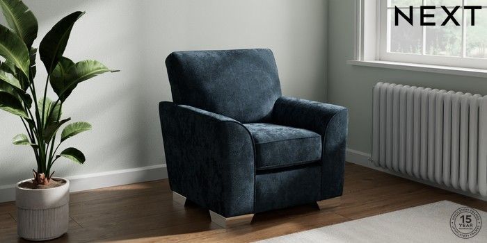 7.2.10 Stamford Small Armchair Distressed Velour Midnight Blue Square Angle - Chrome Metal | Made Click here to use our website with more accessibility support, for example screen readers