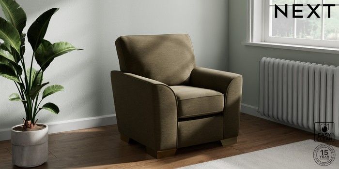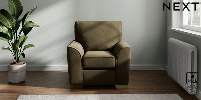 7.2.10 Stamford Small Armchair Fine Chenille Easy Clean Dark Moss Green Square Angle - Brushed Brass | Made Click here to use our website with more accessibility support, for example screen readers