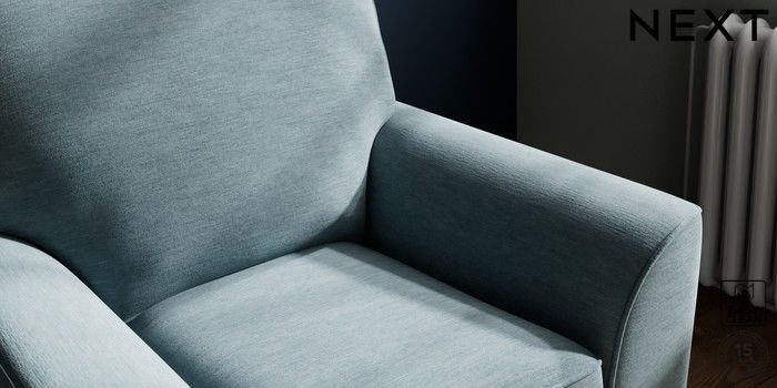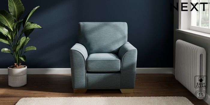 7.2.10 Stamford Small Armchair Fine Chenille Easy Clean Mid Blue Square Angle - Brushed Brass | Made Click here to use our website with more accessibility support, for example screen readers