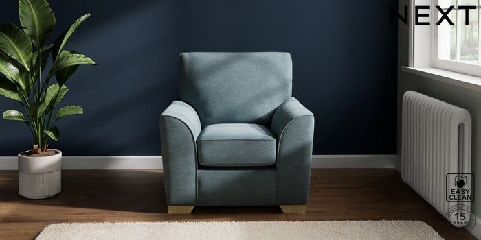 7.2.10 Stamford Small Armchair Fine Chenille Easy Clean Mid Blue Square Angle - Light | Made Click here to use our website with more accessibility support, for example screen readers