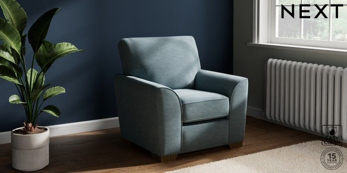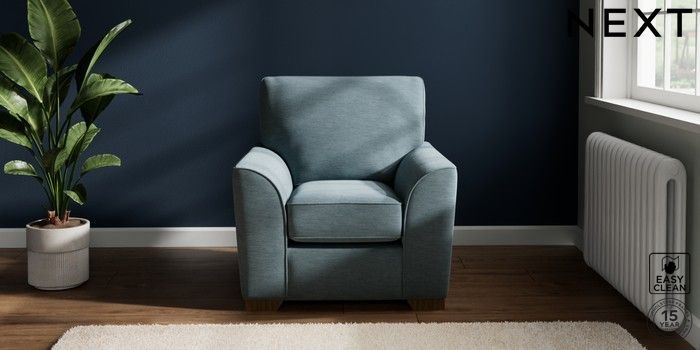 7.2.10 Stamford Small Armchair Fine Chenille Easy Clean Mid Blue Square Angle - Mid | Made Click here to use our website with more accessibility support, for example screen readers