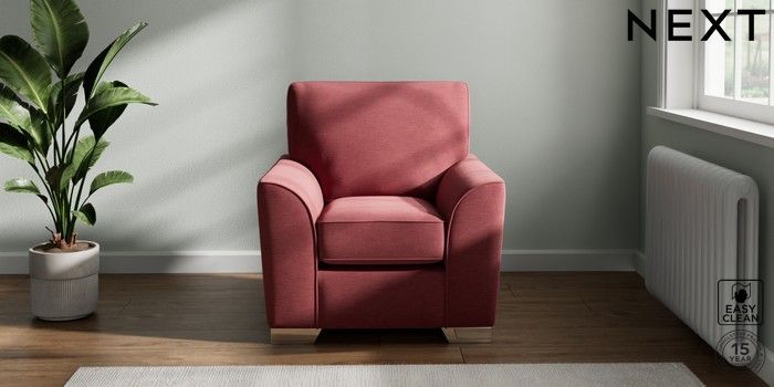 7.2.10 Stamford Small Armchair Fine Chenille Easy Clean Mid Pink Square Angle - Chrome Metal | Made Click here to use our website with more accessibility support, for example screen readers