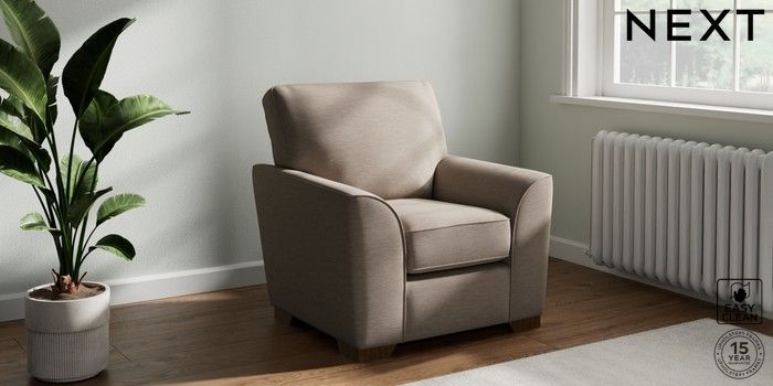 7.2.10 Stamford Small Armchair Fine Chenille Easy Clean Mid Taupe Brown Square Angle - Mid | Made Click here to use our website with more accessibility support, for example screen readers