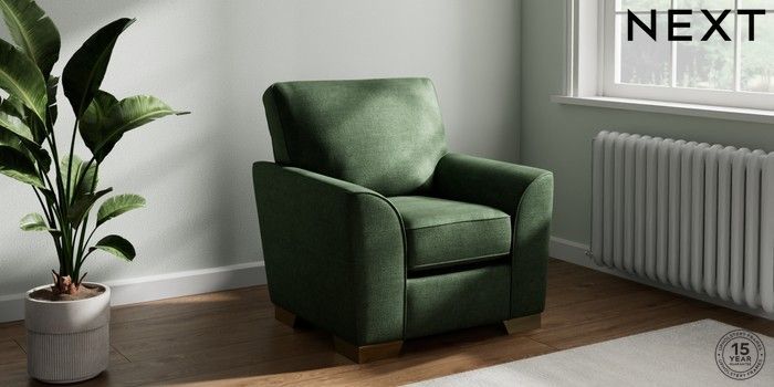 7.2.10 Stamford Small Armchair Luxe Chenille Dark Green Square Angle - Brushed Brass | Made Click here to use our website with more accessibility support, for example screen readers