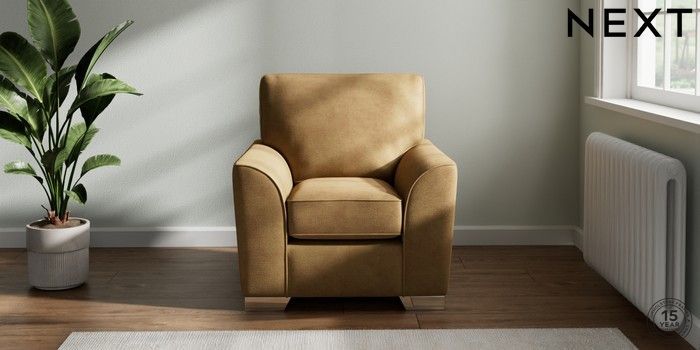 7.2.10 Stamford Small Armchair Luxe Chenille Honey Yellow Square Angle - Chrome Metal | Made Click here to use our website with more accessibility support, for example screen readers
