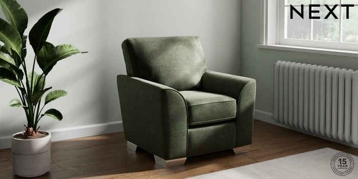 7.2.10 Stamford Small Armchair Luxe Chenille Mid Green Square Angle - Chrome Metal | Made Click here to use our website with more accessibility support, for example screen readers