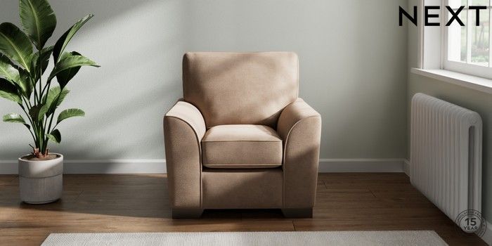 7.2.10 Stamford Small Armchair Luxe Chenille Mid Natural Square Angle - Gunmetal | Made Click here to use our website with more accessibility support, for example screen readers