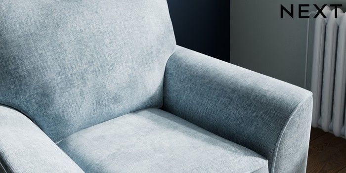 7.2.10 Stamford Small Armchair Plush Chenille Light Blue Square Angle - Chrome Metal | Made Click here to use our website with more accessibility support, for example screen readers