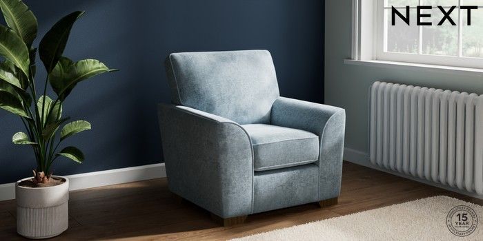 7.2.10 Stamford Small Armchair Plush Chenille Light Blue Square Angle - Mid | Made Click here to use our website with more accessibility support, for example screen readers